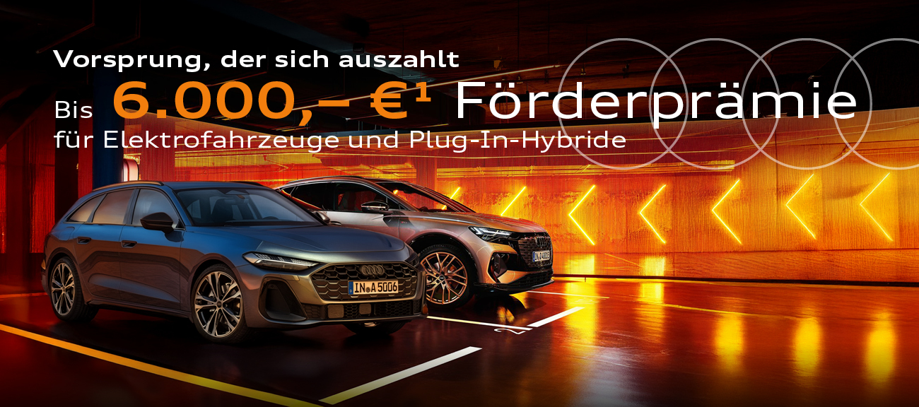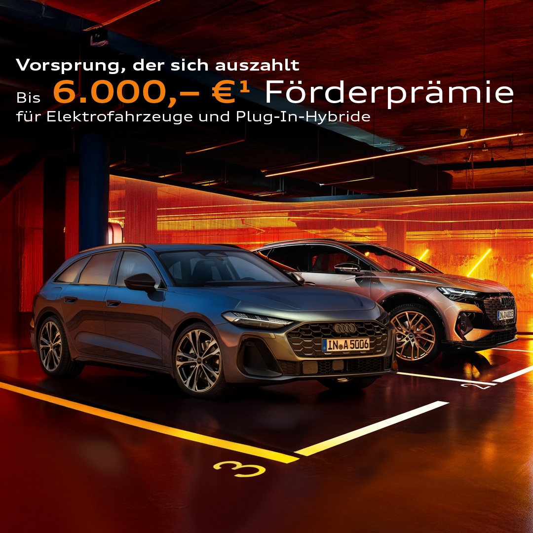 1) Die Sonderzahlung (6.000,- €) entspricht der staatlichen Elektroprämie für zu versteuernde Haushaltseinkommen bis 45.000 € bei einem Haushalt mit zwei oder mehr Kindern unter 18 Jahren; Laufzeit 36 Monate; Jährliche Fahrleistung 10.000 km; zzgl. Auslieferungs- & Zulassungskosten. Angebot für Privatkunden. Ein Angebot der Audi Leasing, Zweigniederlassung der Volkswagen Leasing GmbH, Gifhorner Straße 57, 38112 Braunschweig. Bonität vorausgesetzt. Etwaige Rabatte bzw. Prämien sind im Angebot bereits berücksichtigt. Abgebildete Sonderausstattungen sind im Angebot nicht unbedingt berücksichtigt. Alle Angaben basieren auf den Merkmalen des deutschen Marktes. Gültig bis 31.03.2026.